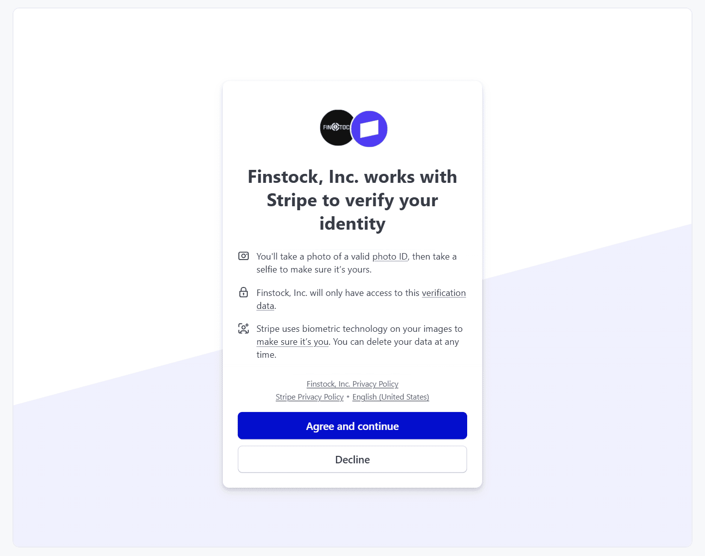To support this update, Finstock, Inc. partners with Stripe to provide a secure, trusted verification experience.